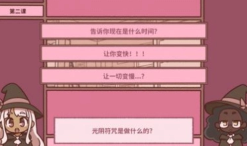 课程选择:进入“第二课”,回答关于“光阴符咒的作用”这类魔法知识相关的问题。