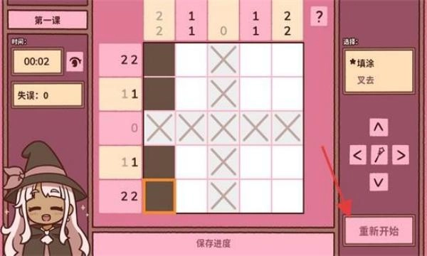 数独闯关:开启数独游戏,支持填数、擦除操作,若出现错误可点击“重新开始”,完成谜题解答以推进课程进度。