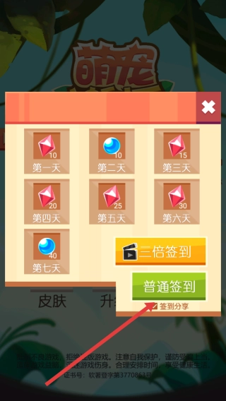 进入签到页面后,可选择【普通签到】或【三倍签到】选项,领取钻石等相应奖励,以此积累游戏内的资源。