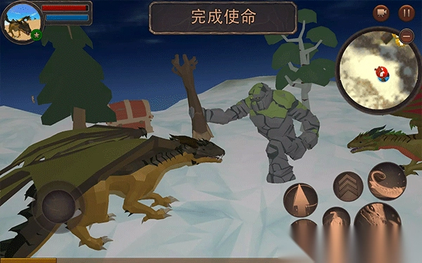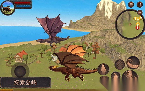 1、基础操控技巧:通过滑动屏幕来调整飞龙的飞行方向,点击对应按钮可释放元素技能,长按屏幕能让飞龙加速飞行;界面会显示生命能量与饥饿状态,需及时狩猎以补充体力。