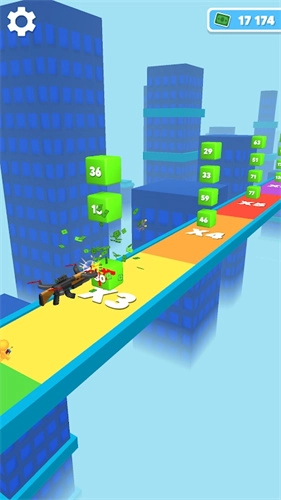 《无人飞枪》安卓版是一款玩法趣味十足又充满刺激感的跑酷射击游戏。在游戏里,你将化身为一把枪,在赛道上持续奔跑——这便是核心玩法。赛道周边有着丰富多样的元素,同时还存在不少阻碍你前进的障碍物。你需要一边跑酷,一边收集子弹和各类物资,随着跑酷进程的推进,你才能真切体会到力量的真谛,获取强大的能力,尽情享受更高阶的战斗乐趣。
