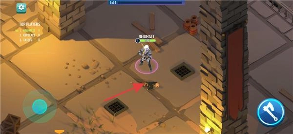 3、在战斗场景中,角色“HERDMATT”身处废墟地形与敌人展开对战,同时界面会显示顶尖玩家的排名情况;玩家可借助虚拟摇杆操控角色移动,并释放技能进行战斗,以此推动冒险进程不断向前。