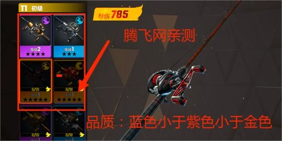 进入游戏主界面后,找到并点击装备选项,就能看到所有鱼竿被划分成了蓝、紫、金三种不同的品质等级。