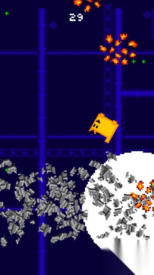 3、在游戏进行时,玩家需要操控黄色方块猫,主动对场景里的【火焰敌人】发起攻击,通过战胜敌人来积累分数,以此推动关卡的进度。