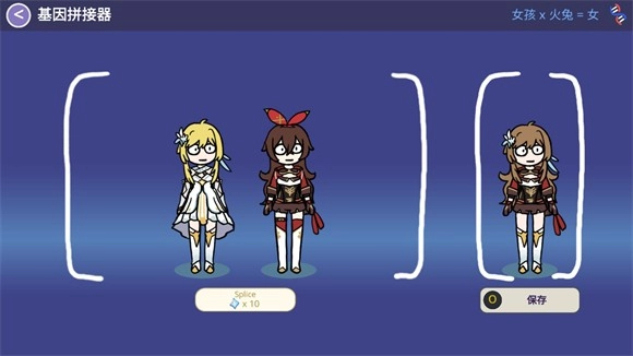 4、选好角色后点击开始,点击spice即可生成新角色,生成后点击保存,该角色就会存入角色图鉴中。