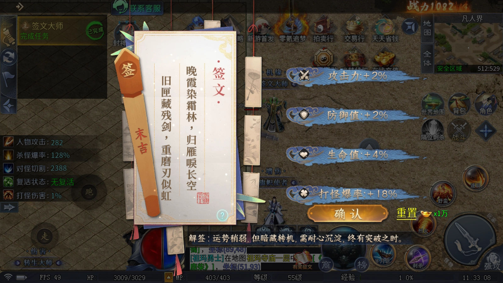 1、签文大师:游戏里每天都能找NPC免费抽一次签,依据签文内容可获取不同属性加成,还能提升打怪的爆率呢!
