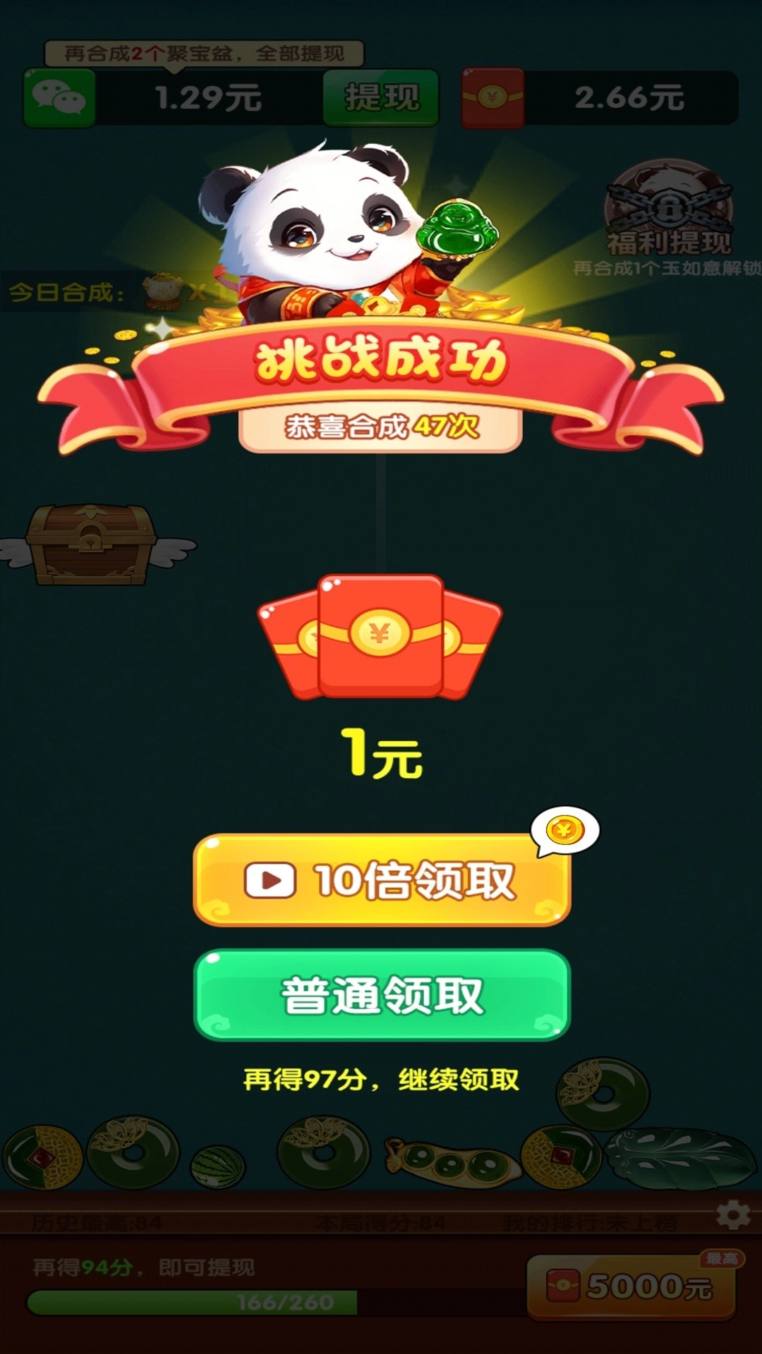 2、多样的关卡任务能助力你更轻松地赢取更丰厚的红包奖励。你合成的玉器数量越多,所能获得的红包金额就会越大!