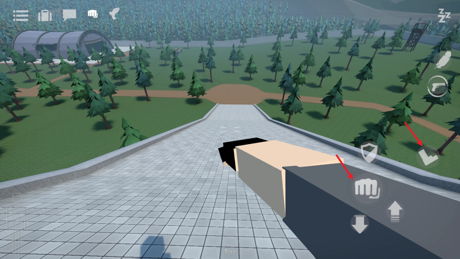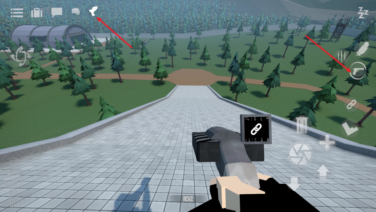 5、无论是点击右侧的手枪键,还是点击左上角的按钮,都能实现武器切换,比如切换到手枪后就能开展射击操作了。