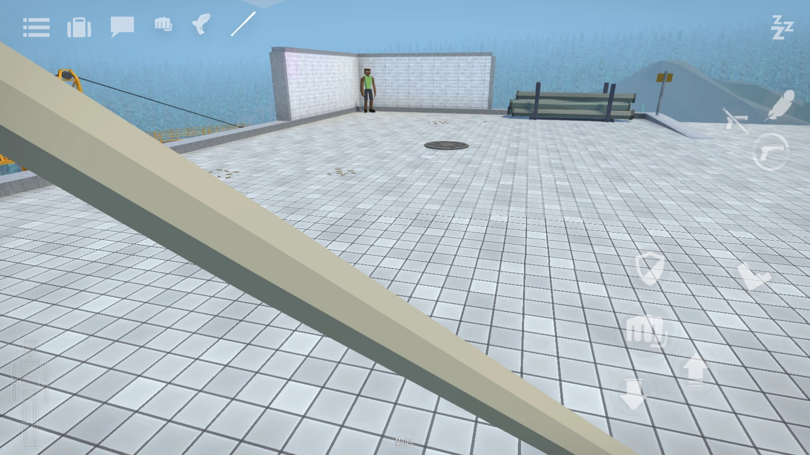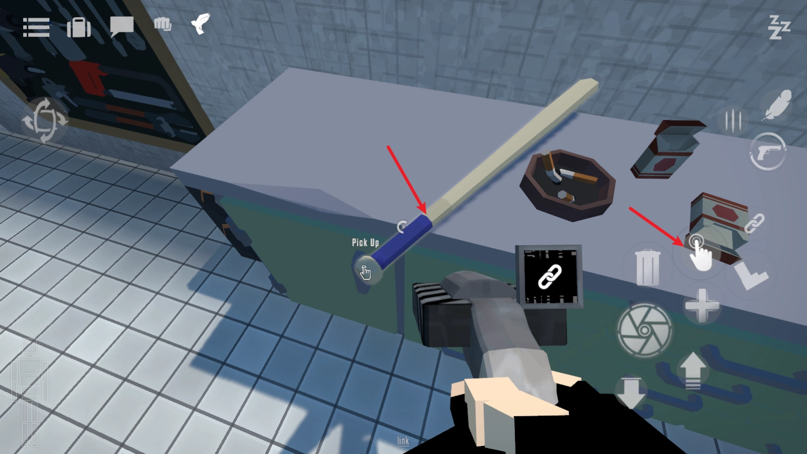 当靠近可拾取的武器时,右侧会弹出交互按钮,长按该按钮即可将武器拿在手中。