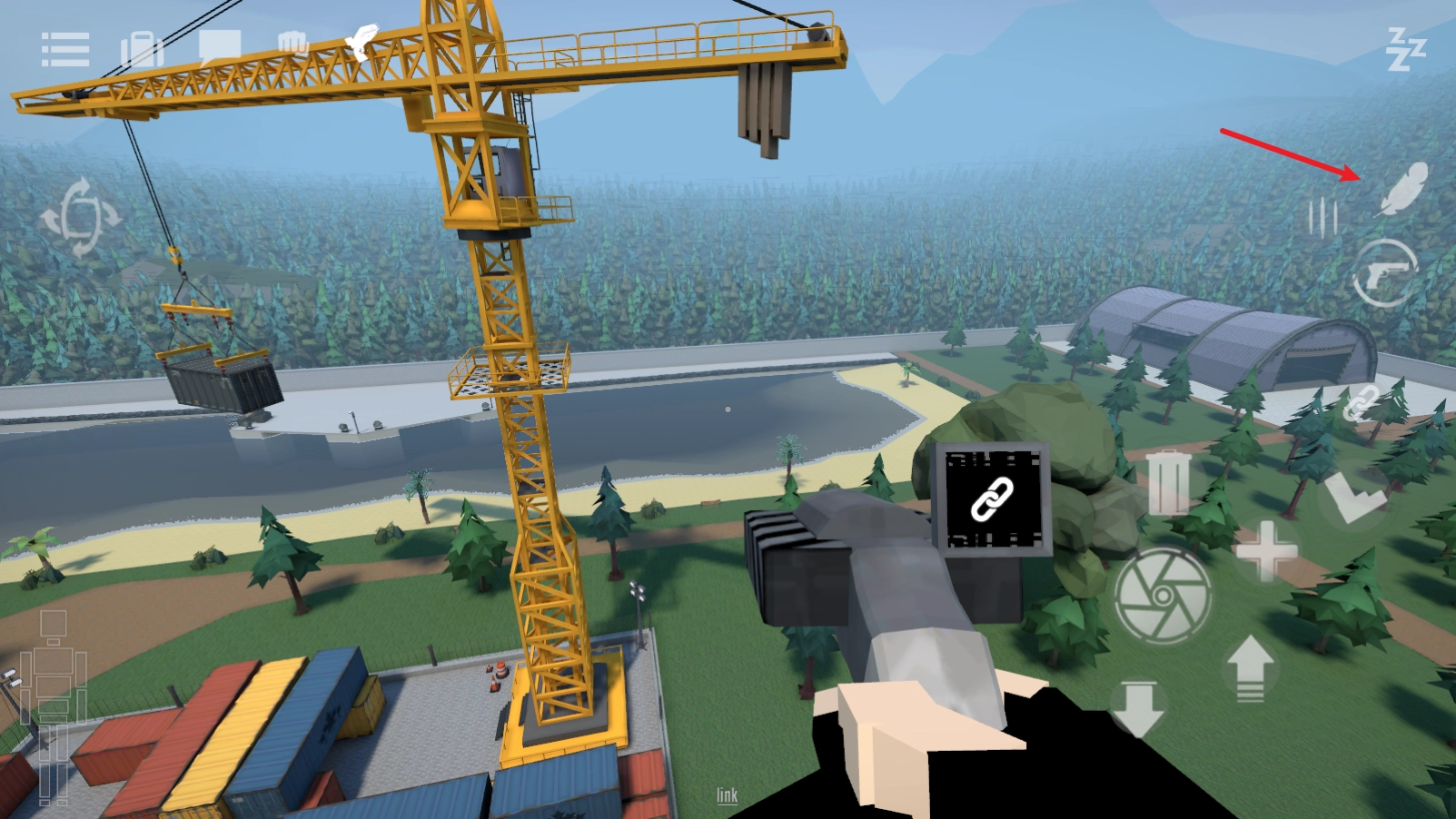 8、点击右侧的羽毛图案,你就能飞天遁地,且没有触碰体积;再次点击该图案,此状态便会关闭。