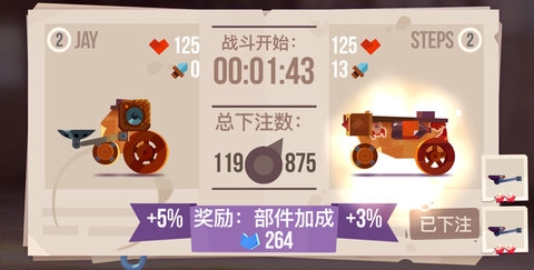 附加篇:转生后建议立刻点满赌局加成、更多赌局和双管火箭这几个技能。开到小轮子后直接去赌属性,推荐优先赌浪板和巨鲸;配件方面则重点赌双管。平均一小时左右就能把一个部件的属性赌满(满属性为60)。完成这些操作后你会发现,转生后的发育速度至少是0转时的两三倍!另外要注意:除了武器和车身外,只要是属性不错的部件,千万别急着用工具箱升级,说不定后期还能派上大用场。1.借助物理原理操控战车展开对决,超快的节奏会让你沉浸其中无法自拔。