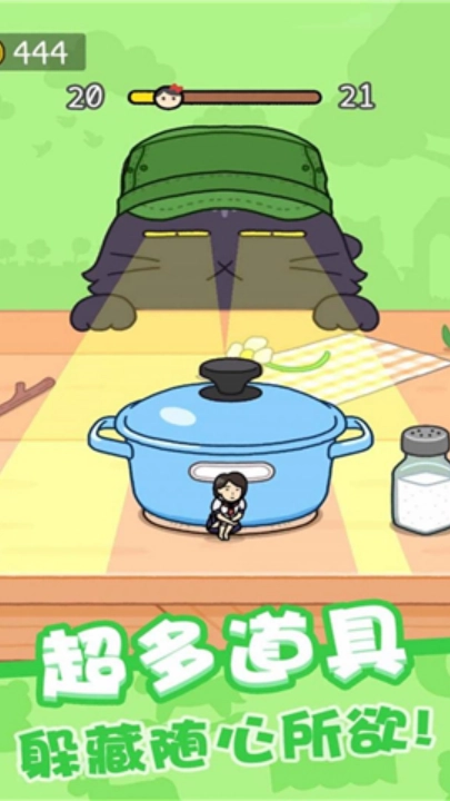 《欢乐躲猫猫》是一款创意十足又趣味满满的躲猫猫游戏,玩家将在游戏里和机灵的猫咪开启一场别出心裁的捉迷藏较量。游戏操作简单,容易上手,采用可爱的卡通画风,玩家需要凭借自己的智慧与技巧,仔细挑选最合适的藏身地点,巧妙地避开对手的搜寻。这里有超多关卡等着你来解锁挑战,还有丰富多样的小道具可以使用哦。