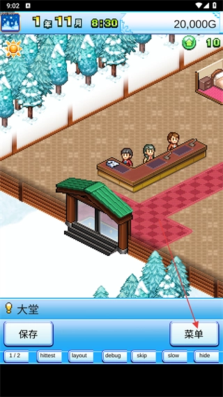 1、点击右下角的菜单按钮,可开展建筑搭建、广告推广以及雪场经营信息查询等相关操作。