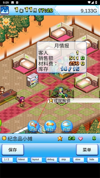 3、点击大厅内的设施,能够查看经营详情,也可以对设施进行移动或拆除操作。