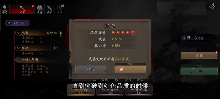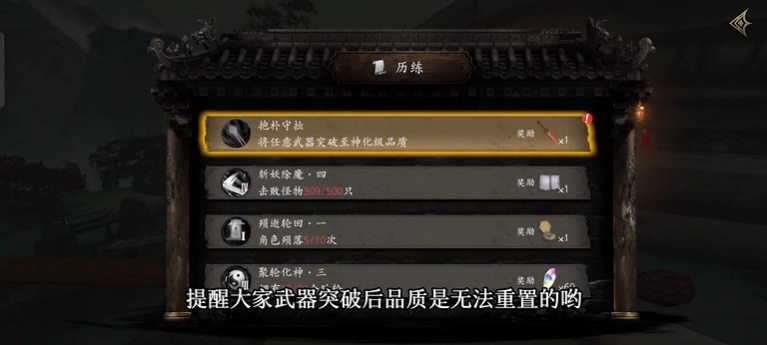 2、当突破到红色品质时,你就能解锁第一个隐藏历练了。