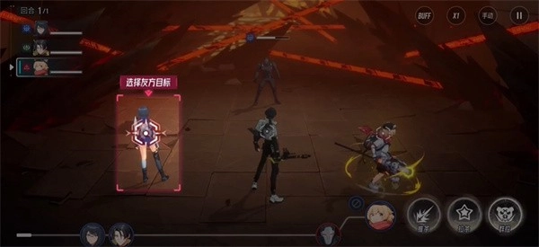 游戏开始前会有新手教程引导,玩家可同时上阵三名角色,建议仔细挑选,搭配出适配的阵容。