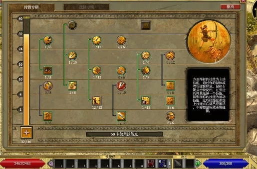 2、全身心投入狩猎专精的堆砌,专精与技能基本采用点对点的提升方式。先把木学知识点满,这样防御会大幅提升,安全方面就不用担忧了,攻击速度也会直线上升。射术本体和齐射技能都要加满,前期点数伤害比百分比伤害更有优势,齐射既能应对单体目标又适合群体攻击,称得上是最强被动技能。