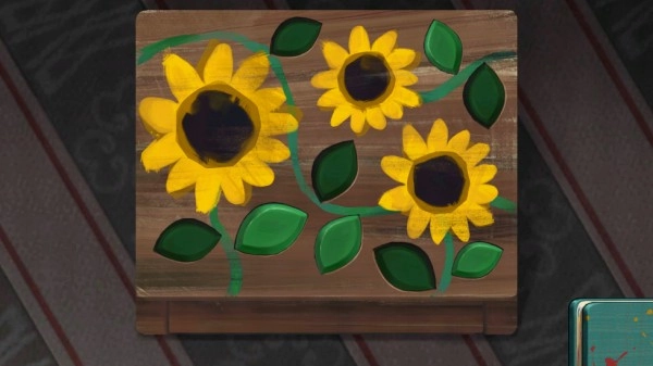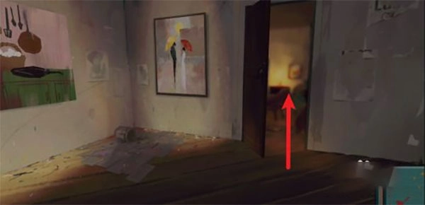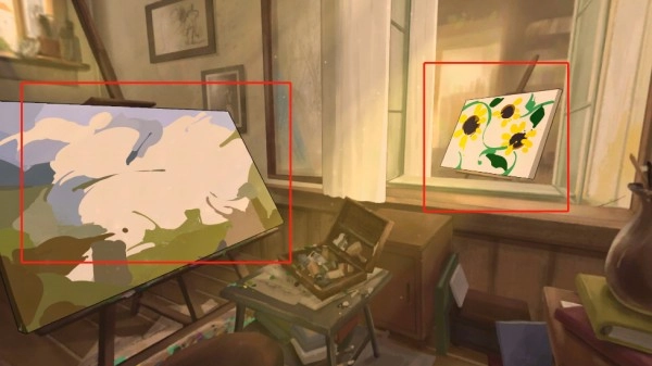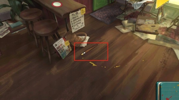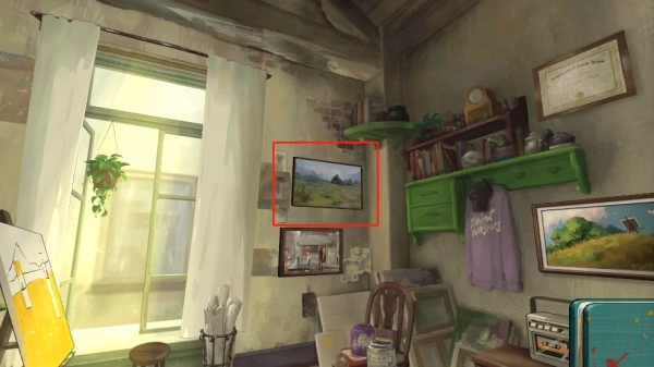 2、在房间的墙面上发现画板,用颜料将伞涂成黄色与红色后,就能得到信件线索;