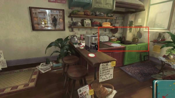 5、你要扮演一位追逐梦想的画家,探寻那能让画作鲜活却不慎遗失的色彩。唯有当你稍作休憩,一杯咖啡搭配一份早餐便能让你重新抖擞精神,继续投入创作。