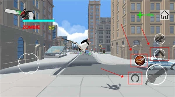 2、左侧的虚拟摇杆用于操控角色的移动方向,右侧的普通攻击键能够让角色连续挥动电锯,从而对周围的敌人造成伤害。