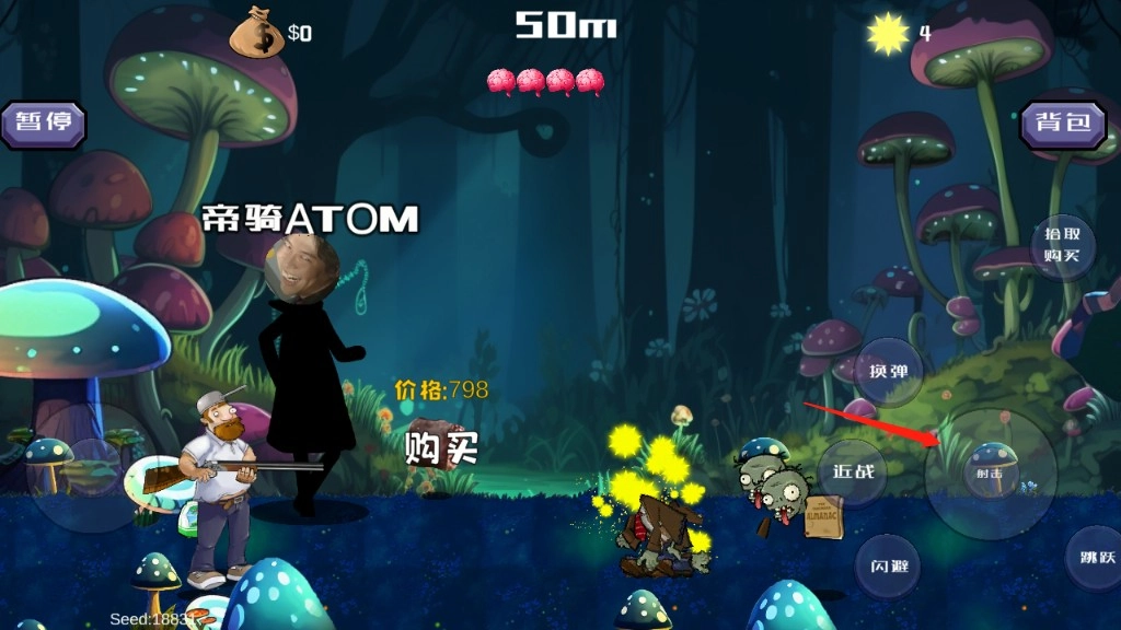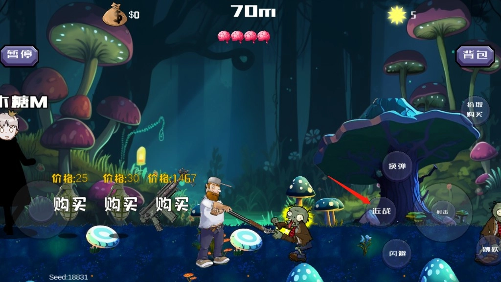 4、当与僵尸距离较近时,可选择近战方式,但要注意不能靠得太近,否则会无法击中僵尸。