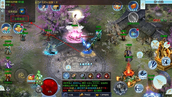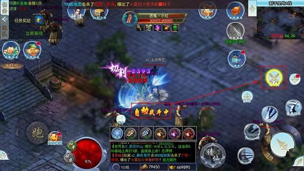 2、当玩家进入战斗状态后,可开启左侧的自动挂机功能,以此解放双手,让角色自动进行战斗。