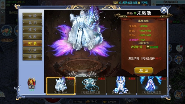 6、另外,游戏里还能激活并穿戴各式各样的炫酷时装,这些时装能显著提升角色的属性与战力。
