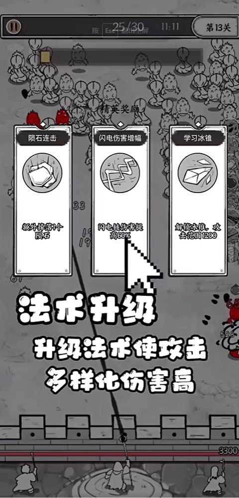 4、游戏期间撑过指定时间便可以学习更强技能;