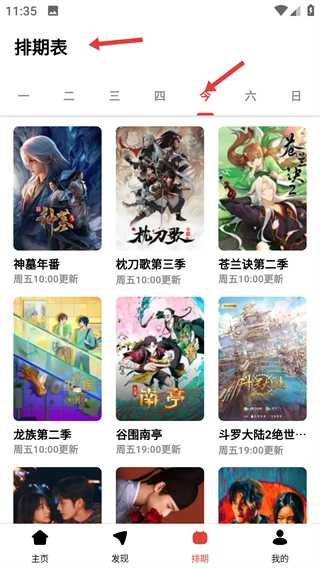 2、进入排期表能查看不同日期的影视更新排期,了解喜欢的影视何时更新方便安排观看时间。