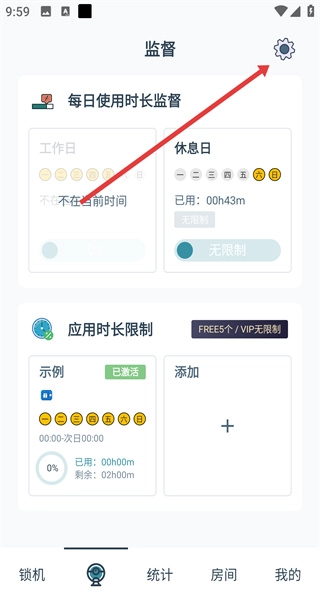 2、进入监督界面后,点击界面右上角的设置图标,即可进入监督设置页面。