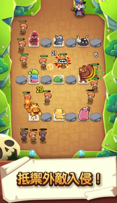 2.必须战略性地放置怪物和英雄,以最大限度地对攻击敌人造成伤害。