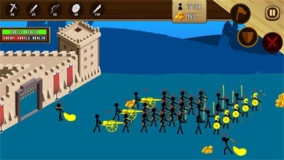 1、训练各种火柴人兵种,开启城堡的攻防。