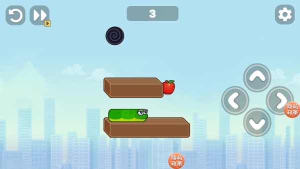 2、通过滑动屏幕来控制小蛇的移动方向,目标是吃掉场景中出现的苹果。