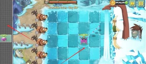 1、种植新植物,可以对角射击的旋转芜蒿,打击冰川消除冰块。
