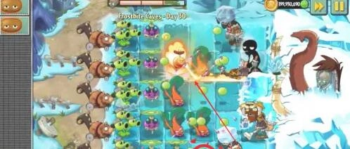 3、种植传送带给的植物,种植大量的旋转芜蒿使用能量。种植燃烧的豌豆射手,对豌豆射手使用能量豆,火烧僵尸。