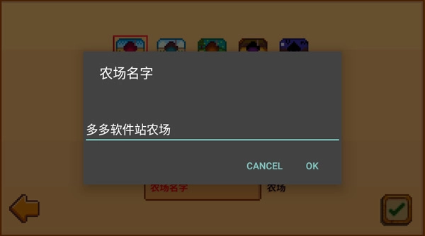 4、点击创建游戏,输入一些属性,点击右下角的勾;