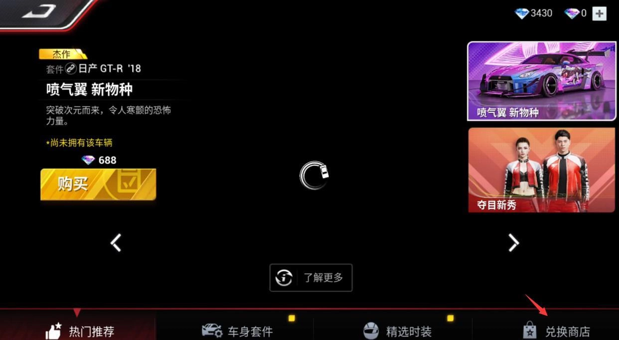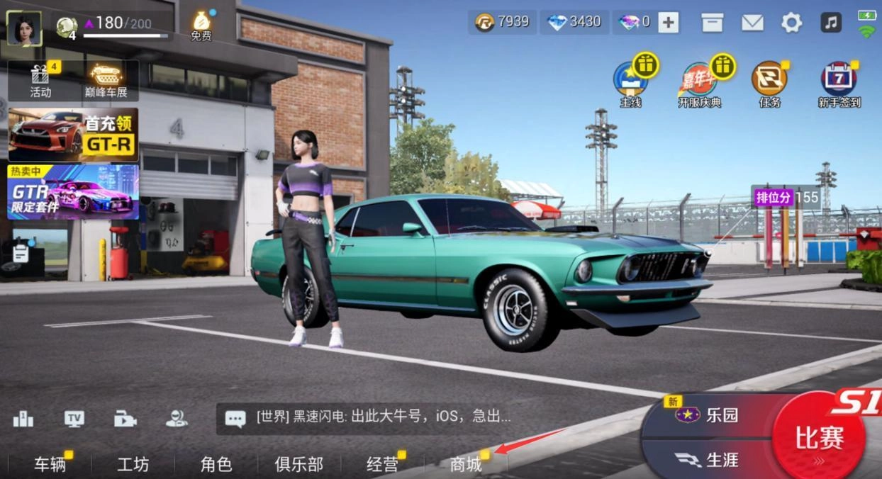 第一步:进入巅峰极速的游戏大厅界面,找到并点击商城进行解锁操作。