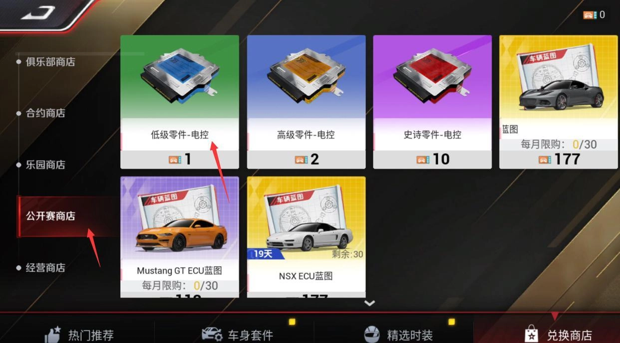 步骤三:点击公开赛商店⇨点击需要的电控材料;