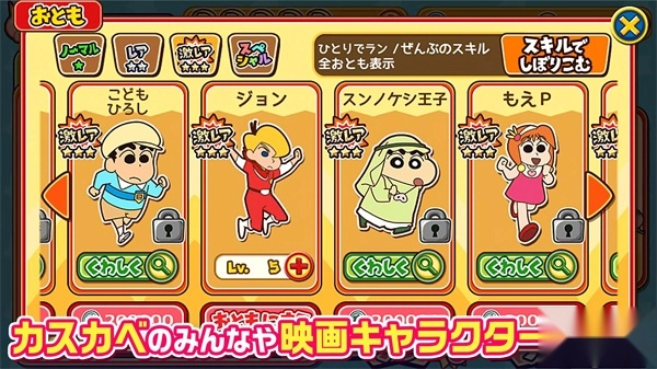 收录多位原作中的人气人物,除蜡笔小新外,风间彻、妮妮、阿呆等角色均可通过游戏内任务或金币解锁。每个角色都拥有专属的跑酷动作与技能,部分角色还可解锁动漫经典服饰皮肤,玩家可根据喜好选择角色,打造专属的个性化跑酷形象。