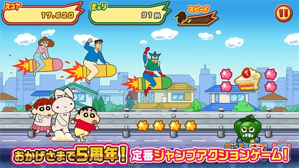 适合所有蜡笔小新动漫粉丝,高度还原的画风、角色与场景,能让粉丝沉浸式感受动漫世界的魅力。操控自己喜爱的角色跑酷,仿佛置身动漫剧情中,既能重温童年回忆,又能获得全新的互动体验,是粉丝不可错过的情怀之作。