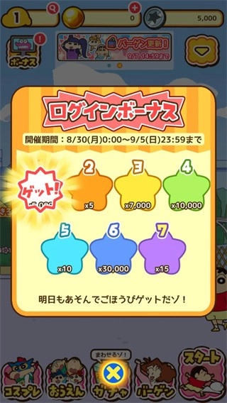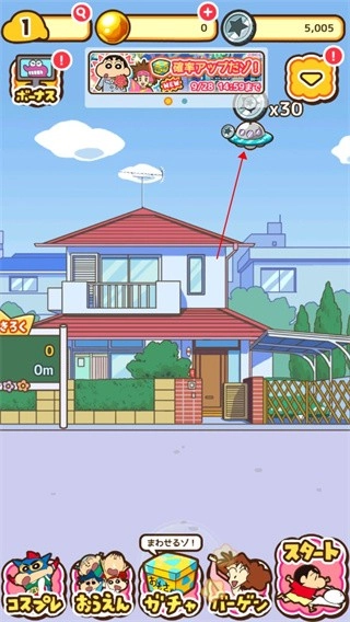 首次启动游戏后,可选择游客登录或注册账号登录(注册账号可同步游戏进度与好友数据)。进入游戏首页后,点击“开始游戏”前,可先在“角色”界面选择初始角色(默认解锁蜡笔小新);进入“设置”界面,可调整背景音乐、音效音量,适配个人游玩习惯。