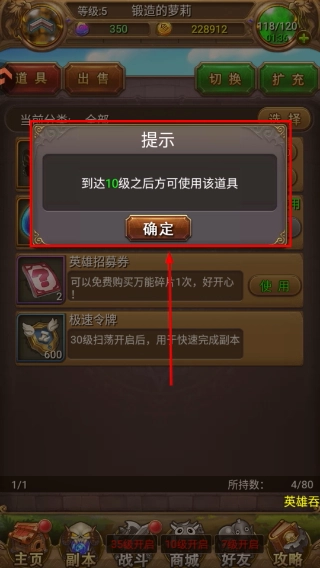 4、使用【英雄招募券】需要达到10级,要是当前等级还不够的话,可以先把等级提升上去,等满足条件了再进行相关操作。