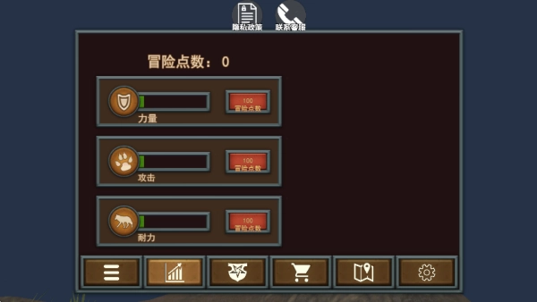2.如下图所示,在游戏主界面的属性面板中,玩家可以消耗冒险点数来提升蜘蛛的基础属性。