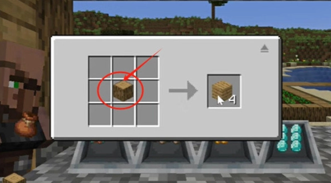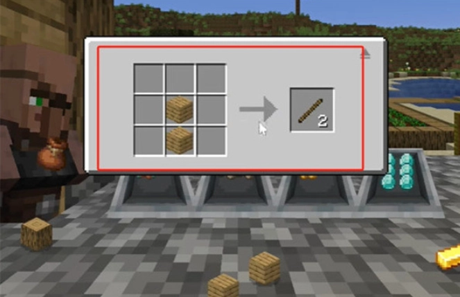 10,分解的四个方块放入两个在合成台,合成两根木棍。