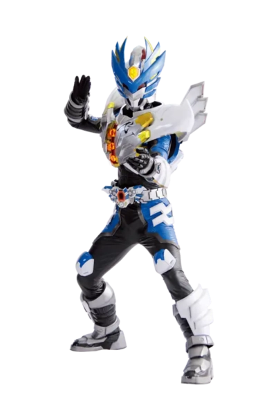 当意念的力量积蓄到特定阈值时,将对应名为“疾电飞影”的卡片嵌入召唤装置以启动变身流程。启动瞬间,召唤装置的侧缘会延展形成翼状结构,胸前的防护层随之展开并转化为纯粹的银色形态。背部同步伸出双翼与推进装置,原有的眼部遮蔽区域被银色构件替换,同时新增一对赤色眼罩,而蓝色的冠形部件边缘也会延伸出翼状的附属结构。