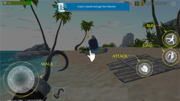 不过得留意珊瑚礁——它或许暗藏危险,里面可能有鲨鱼出没。你的目标就是活下去!