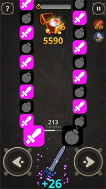 这款游戏的核心操作方式以点击为基础,和常见的下落式音舞类游戏在玩法逻辑上有共通之处。玩家需要精准点击界面中带有剑形标识或色彩鲜明的图标元素,以此来累积连续操作的计数;需要特别注意避开带有地雷图案的图形,一旦误触不仅会中断当前的连续计数,还会导致游戏可用时间缩短。