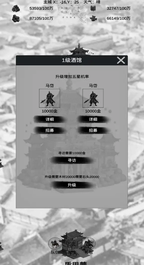 要时刻调整你的部队配置,所携带的兵种与部队规模越大,你的战斗能力就会越强,而武将也能为你带来自身属性方面的提升。