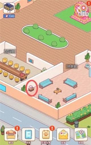 启动游戏后进入主界面,找到休息室并点击任意区域进入。