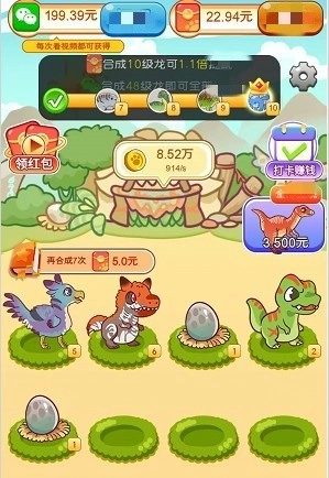 新用户首次登录平台时,系统会自动发放10元红包作为见面礼;若后续在游戏玩法中成功将两条初级龙合成升级为二级龙,还能额外领取10元红包奖励。